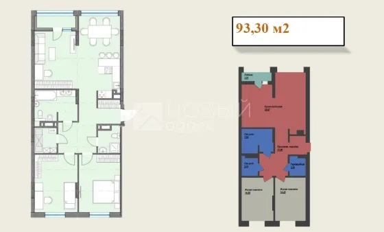Квартиры однокомнатные, общей площадью от 39,4 кв.м. до двухкомнатной квартиры , общей площадью 93,3 кв.м.