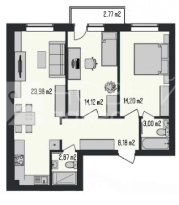 В продаже: 1 комнтатные от 54,9 кв.м. 2 комнатные от 68,2 кв.м. |